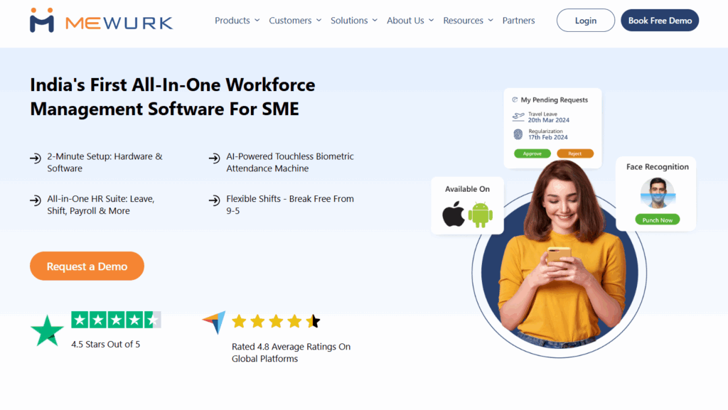 - Key Features: Three-way attendance marking (web portal, mobile app and biometric), flexible shift management, smooth HR task management, secure document storage.