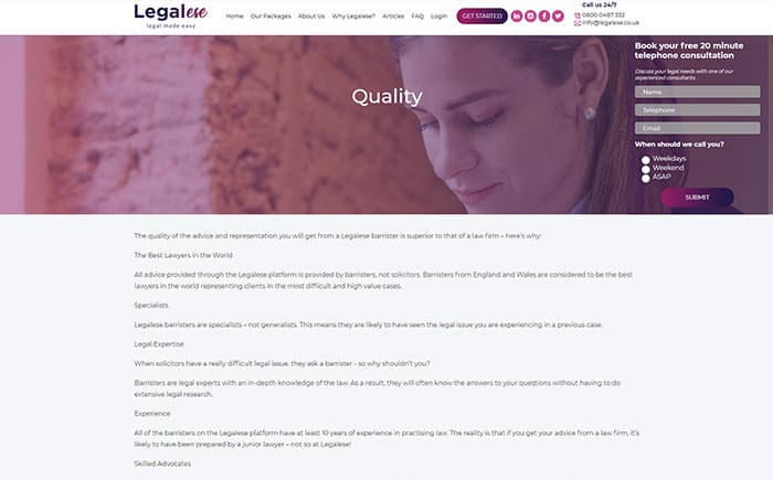 Our customer Legalese is a global law firm with 20 years of experience in the legal industry. They are a group of top business lawyers who wish to stop charging needy clients exorbitant fees. Instead, they created a platform to assist people and provide top-notch legal advice for a fraction of the cost. Unfortunately, this website has several difficulties that resulted in a lack of communication between the client and the attorneys and affected the overall process.