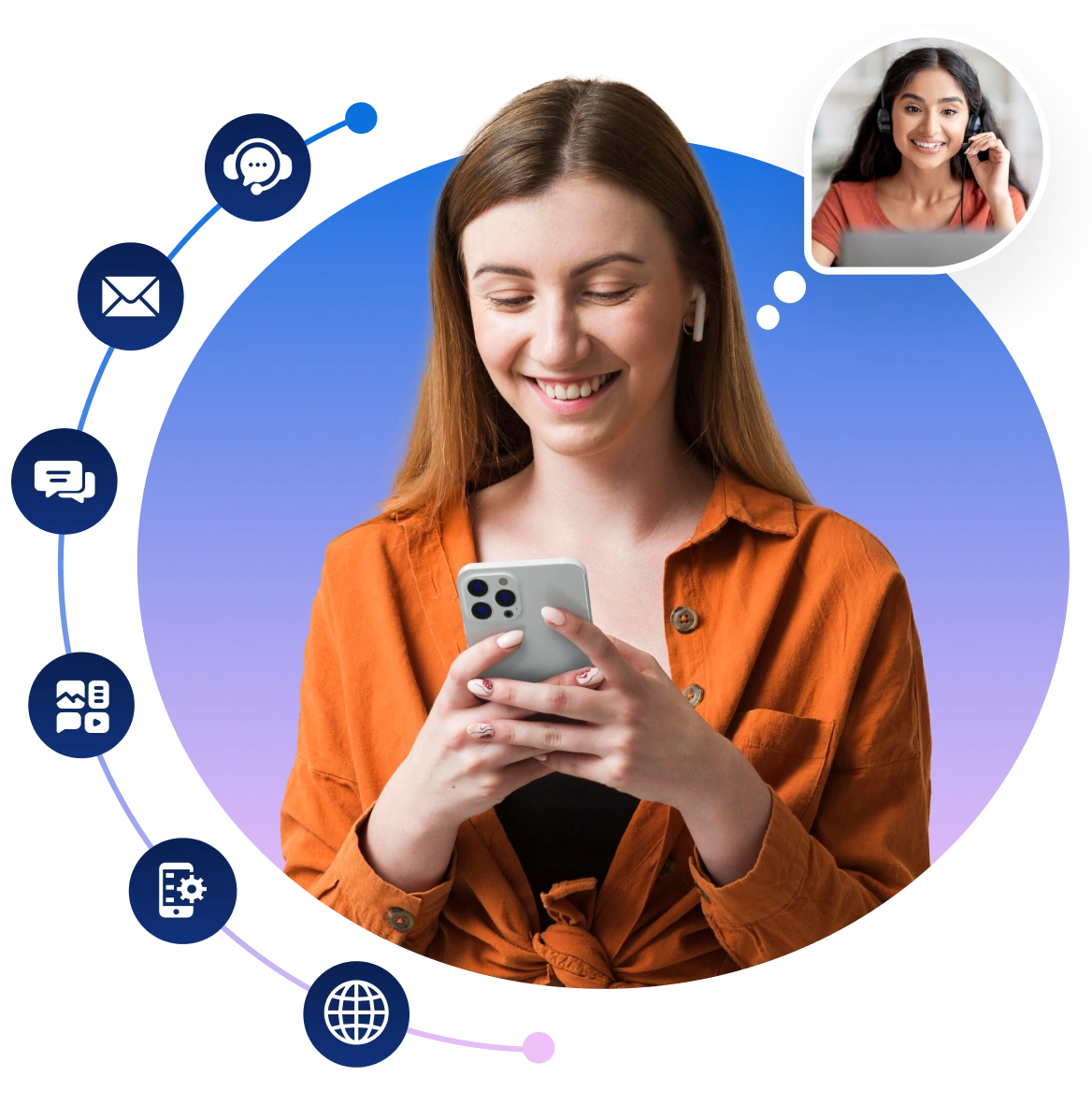 Our omnichannel support integration combines communication channels—phone, email, chat, SMS, video, and social media—into one unified system. This seamless approach enhances customer support and provides a cohesive platform experience.