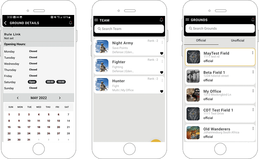 The app's customer wants to see as many Airsoft players as possible brought together through it so that they may organize competitions, events, and more. In this manner, players can handle anything related to their games inside the same interface. The customer's goal is to attract as many potential customers as possible. Users may sign up for a team, talk to other local gamers, and create as many new friends as they like in this section. Also, keep up with all the latest airsoft news quickly with the news feed available. Alternatively, they may go to the events area to check out what's happening and let you know whether they'll be there.
