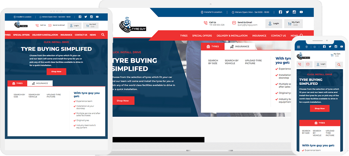 Our Magento eCommerce website developers developed a functional B2C Magento website that allows customers to review different tires, their details, and then make their purchase decision. Our team included features such as shop as per tire size, vehicle model, and request quote for insurance. The latest news, testimonials, tire installer registration, and tire shipment at the customer address are some factors that influence purchase decisions.