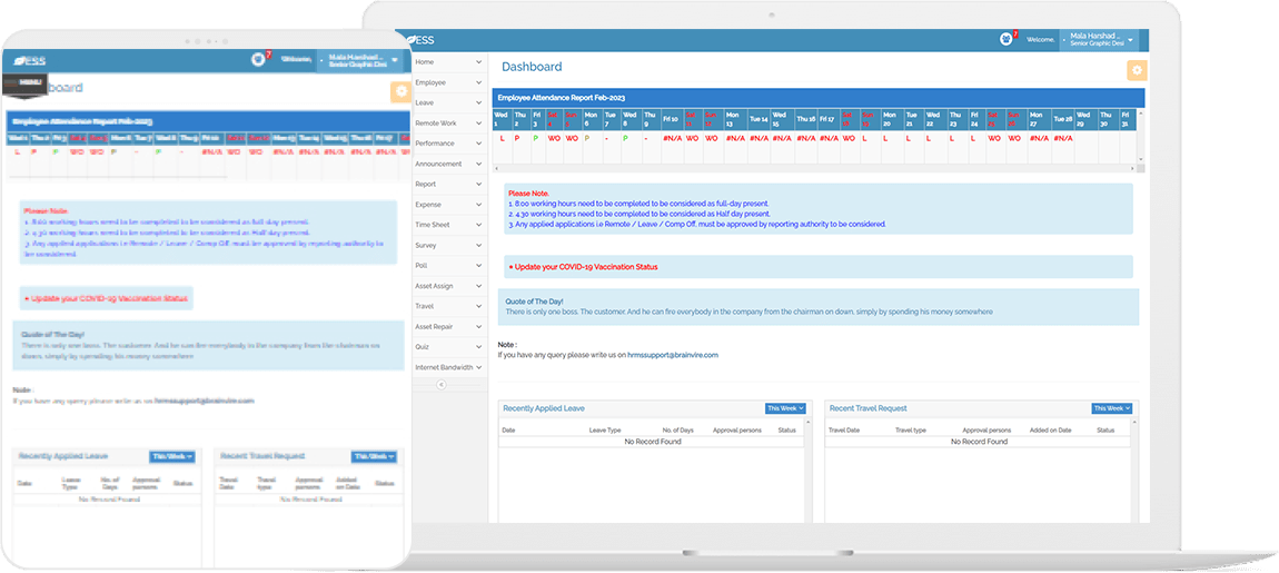 Brainvire’s Microsoft team designed a platform that offers more features than the traditional HRMS system. As a Microsoft Gold Partner, we crafted a centralized system that allows the HR team to visualize payroll, recruitments, corporate administration, performance monitoring, and other employee-centric activities through this platform. This cutting-edge platform automated and streamlined all HR operations. The HR can add new user to the system. Employees can easily update their attendance and work details from anywhere worldwide. The platform provides real-time information to employees and HR professionals. Besides, this platform is less technologically challenged and user-friendly. Each user can review all details based on their access. Employees can submit their leave requests through the web application. They can choose the type of leave, the duration of the leave, and provide a reason for the leave. The leave approval workflow enables managers to review and approve leave requests. They can view employee leave requests, check team availability, and approve or reject leave requests. The web application has different levels of access for employees, managers, and HR managers, allowing each user to access the relevant features of the application.