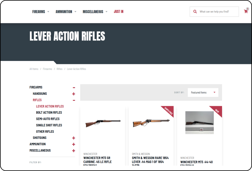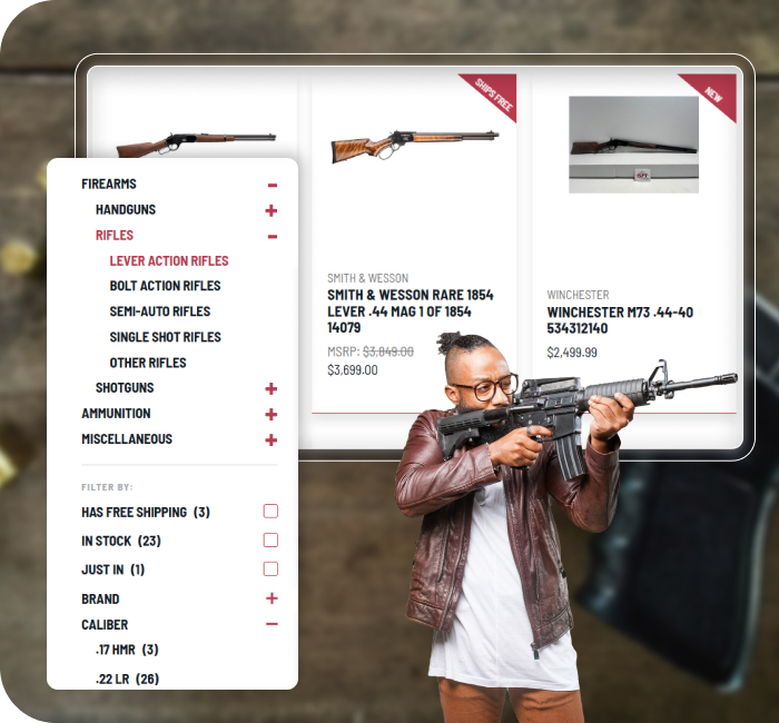 We integrated sophisticated product filtering options that allow customers to quickly find firearms and accessories based on their specific preferences, such as brand, caliber, and availability.