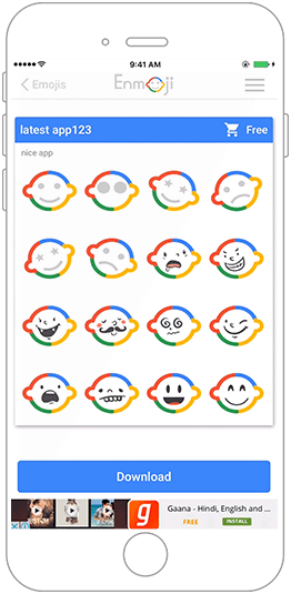 Various versions for emojis or stickers that are free and paid are displayed