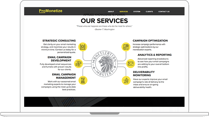 ProMonetize is a digital marketing and consulting company helping affiliate marketers, eCommerce retailers, software development firms, students, non-profit organizations and online education firms to earn revenue from effective online marketing and data monetization strategies. The client requirement was to develop the WordPress website for promotion of their brand and monetization services. They required an online entity through which they can sell out their monetization training resources online.